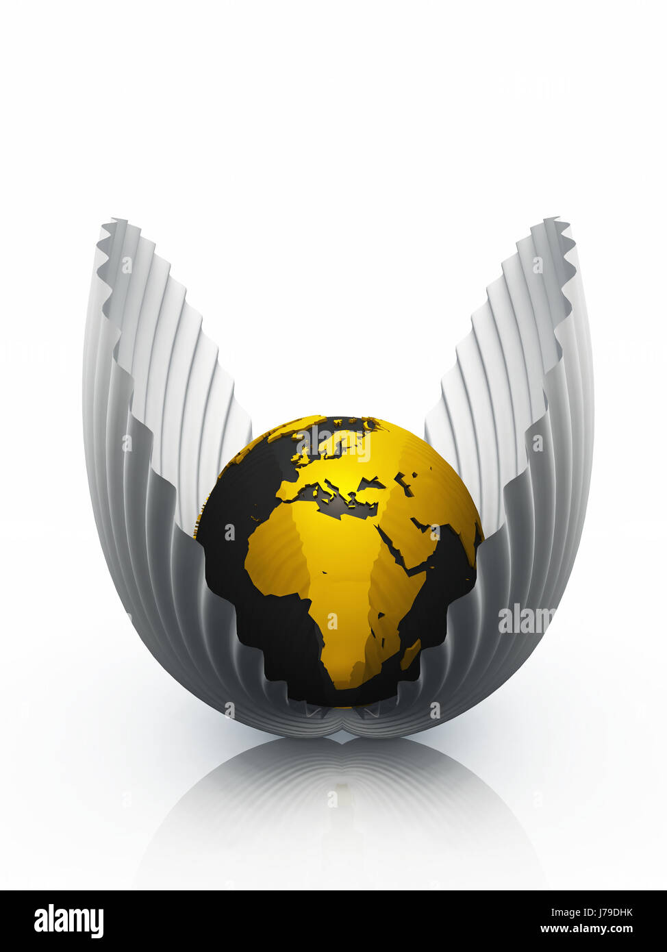 3d Globe In Shell Black Gold Stock Photo Alamy