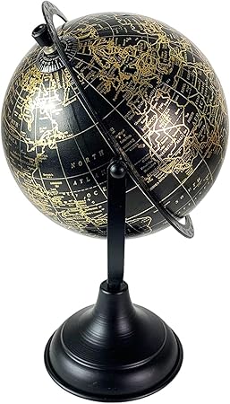 27cm Black Gold World Globe Vintage Rotating Atlas Office Ornament