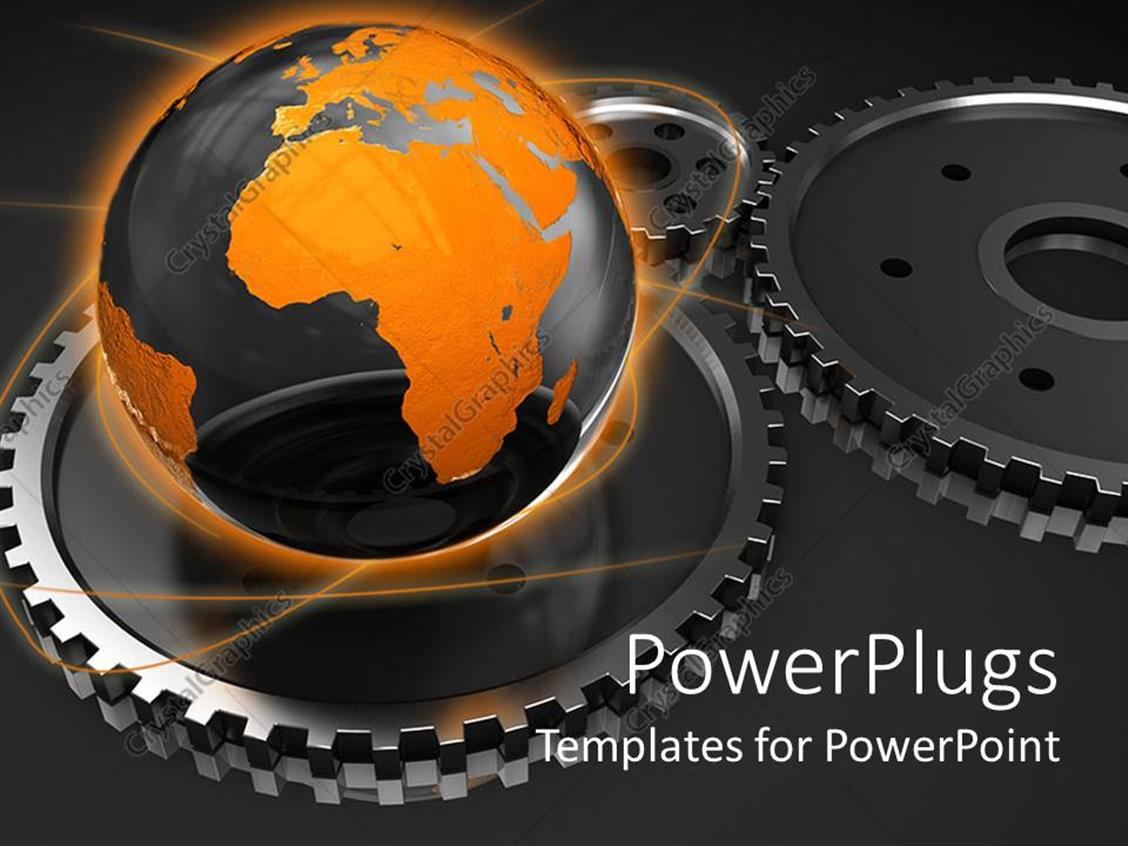 Powerpoint Template Black And Gold Globe On Gears 10294