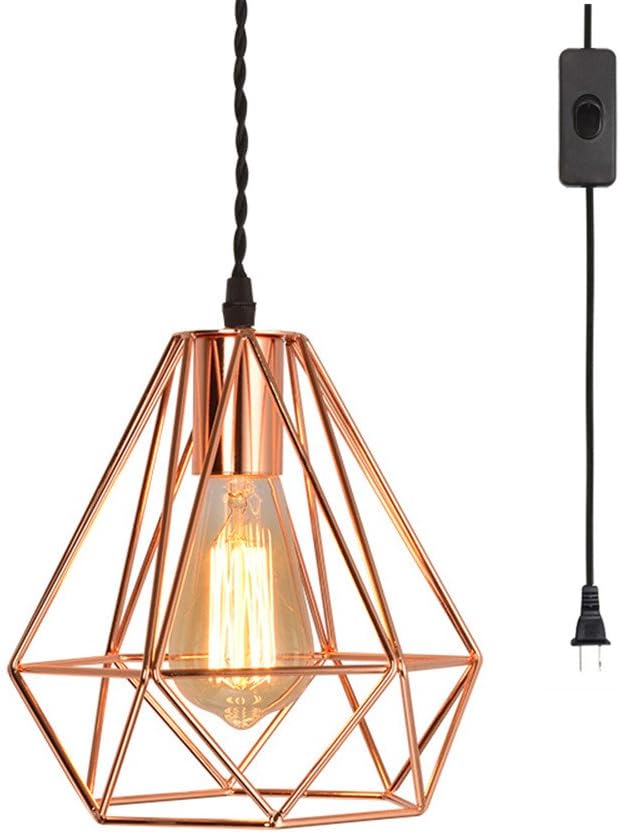 Industrial Rose Gold Metal Cage Pendant Light With Black Cord