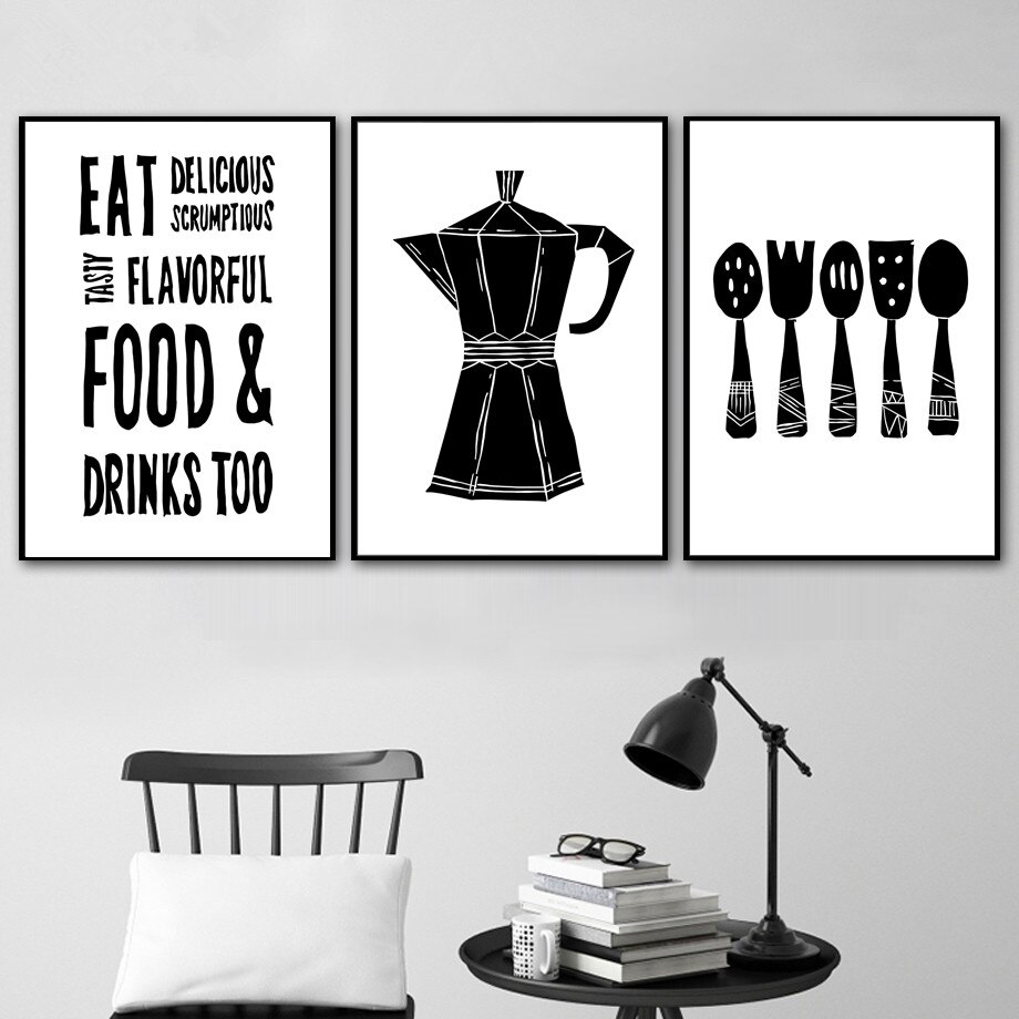 Black White Teapot Spoon Fork Wall Art Canvas Painting Nordic Posters And Prints Wall Pictures For Living Room Kitchen Shopee Indonesia