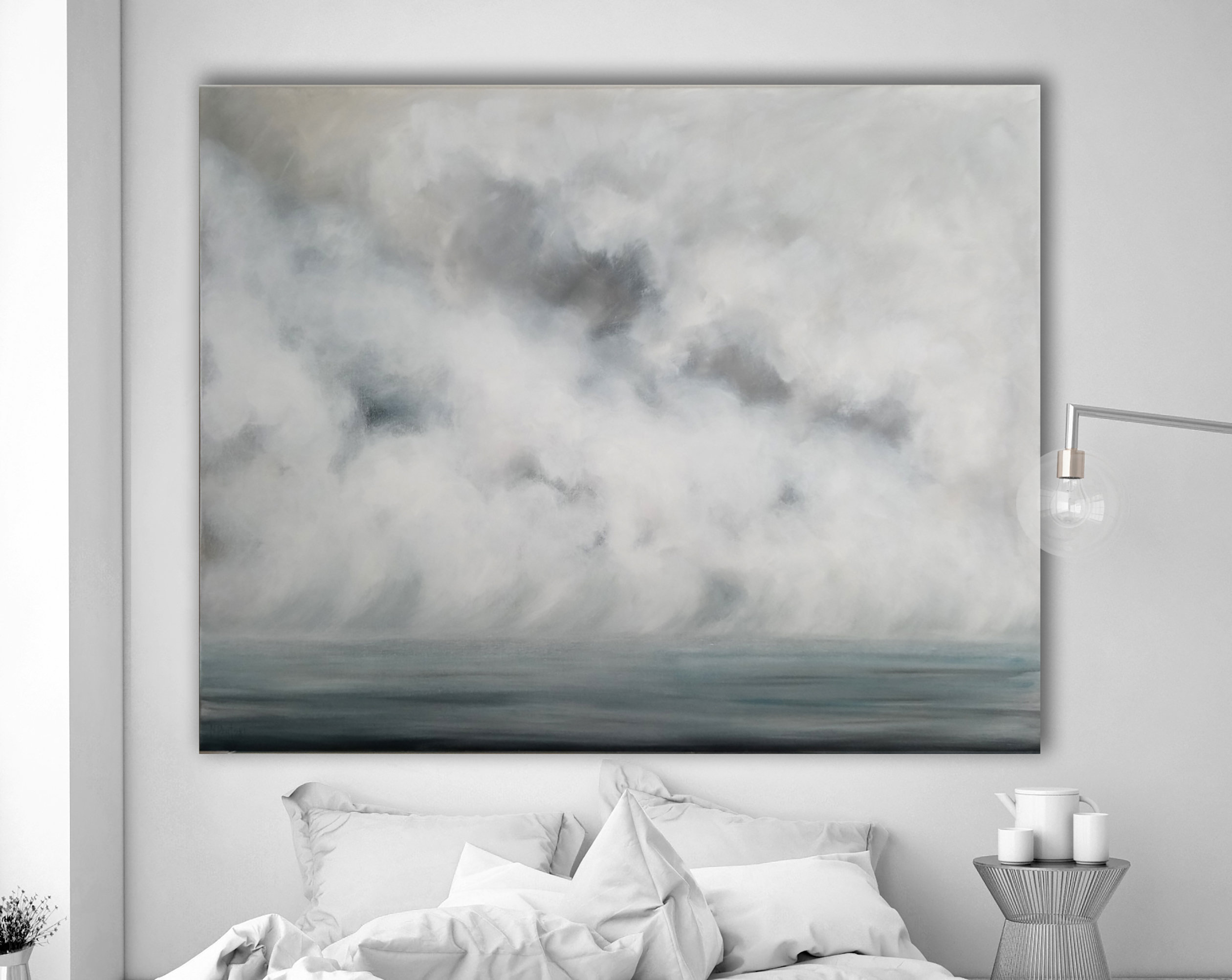 60x48 Original Painting Large Canvas Art Gray Abstract Seascape Minimalist Art Abstract Lanscape Acrylic On Canvas Ready To Ship
