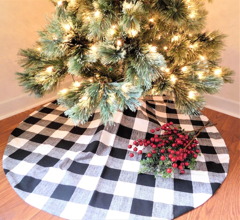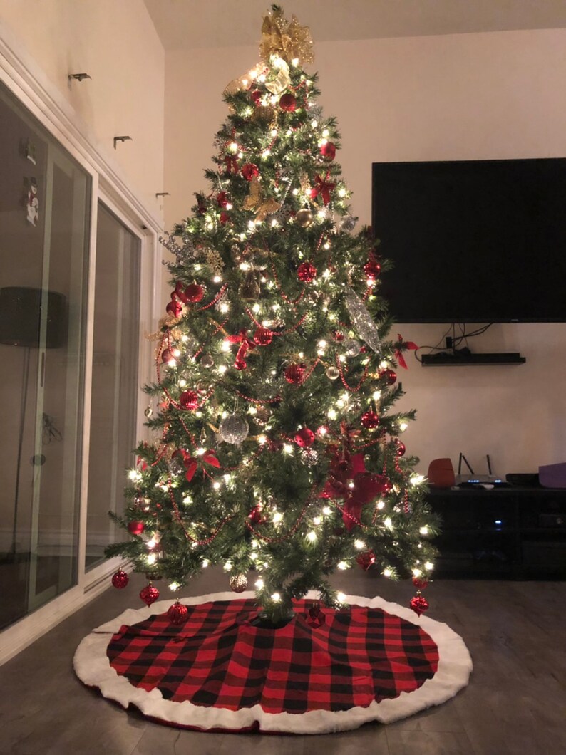Ships Fast Christmas Tree Skirt Black Plaid Tree Skirt Red Etsy