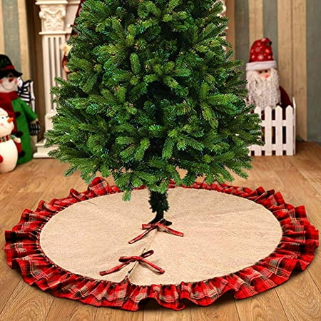 48 Inch Christmas Tree Skirt Linen Burlap Xmas With Plaid Ruffle