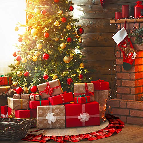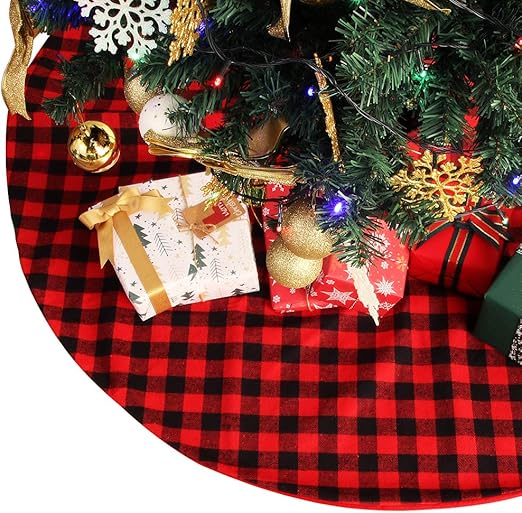 Morinostation 48inches Large Plaid Christmas Tree Skirts Red Black