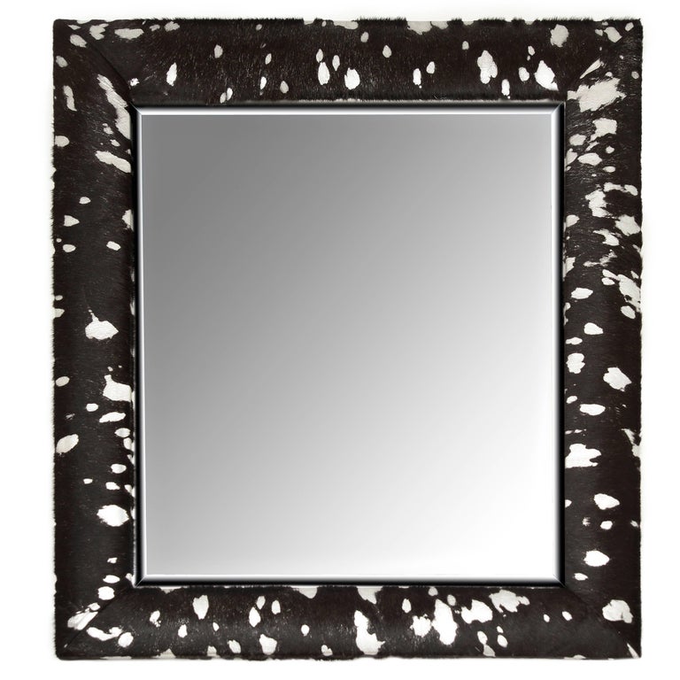 Contemporary Black And Silver Metallic Hair On Hide Framed Beveled