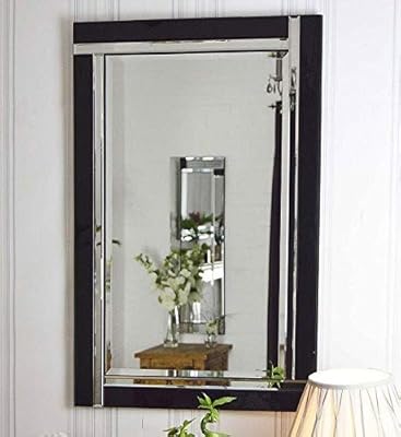 Black And Silver Bevelled Venetian Wall Mirror 3ft X 2ft 91cm X