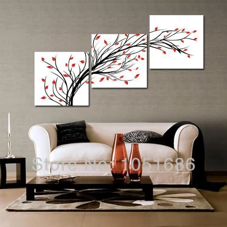 3 Pieces Abstract Oil Painting Wall Art Home Decoration Black