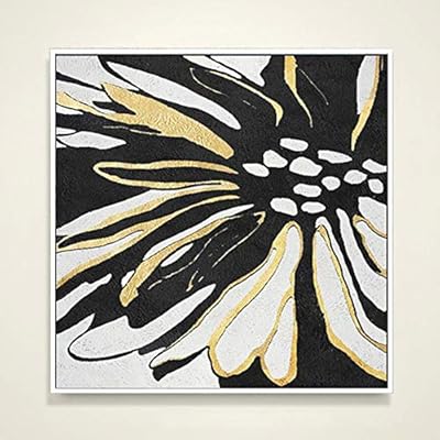 Large Square Black White Gold Abstract Oil Painting Abstract