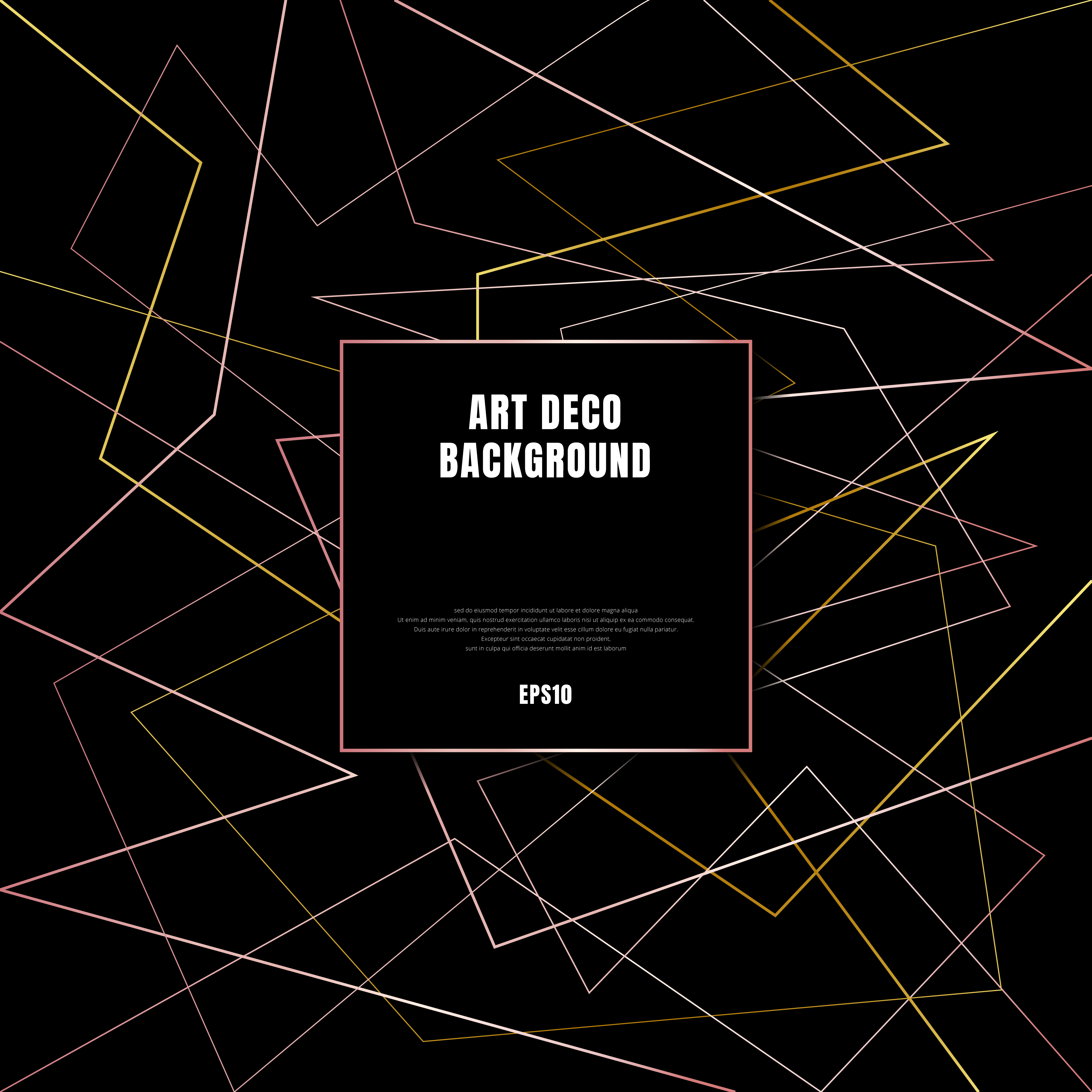 Abstract Gold Lines Art Deco Style On Black Background With Square
