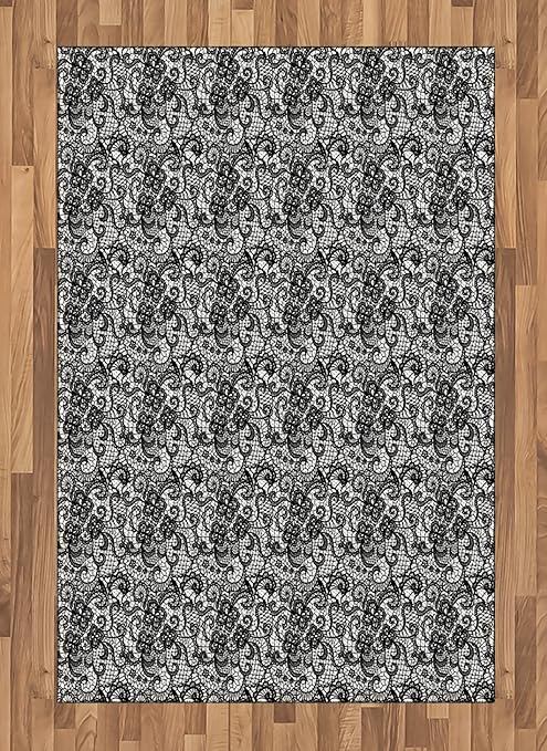 Amazon Com Lunarable Black And White Area Rug Lace Like Floral