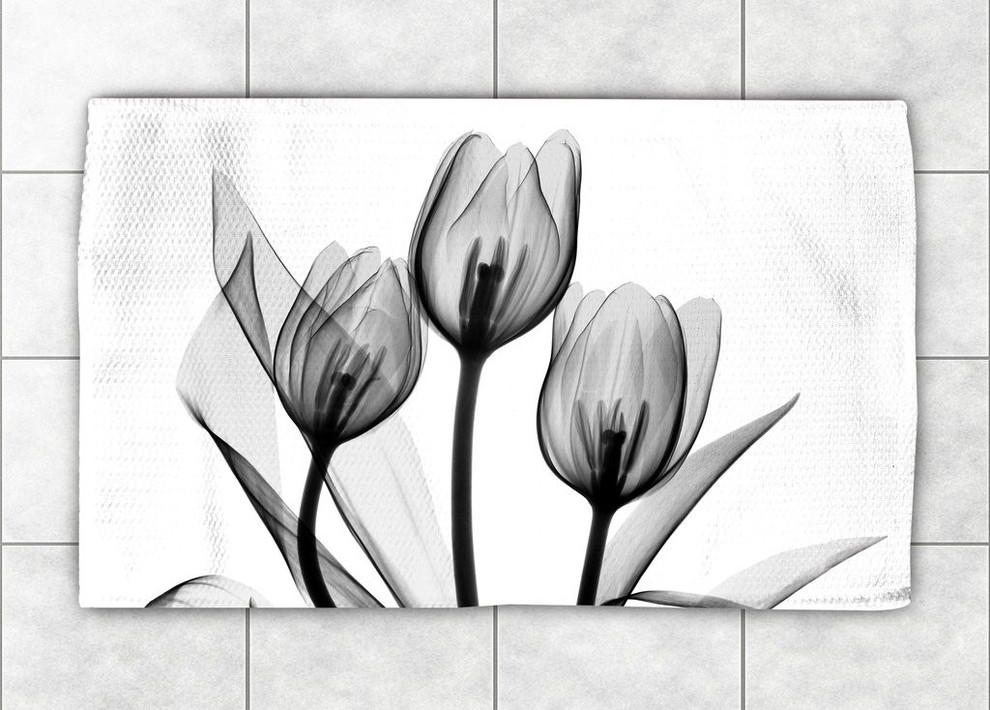 Laural Home Black And White Tulips Accent Rug Contemporary