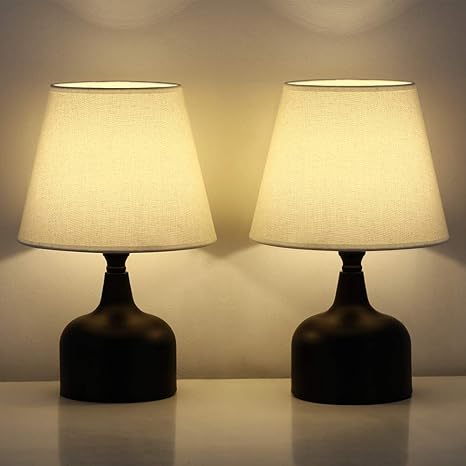 Haitral Modern Bedside Lamp Set Of 2 Small Black White Lamp With