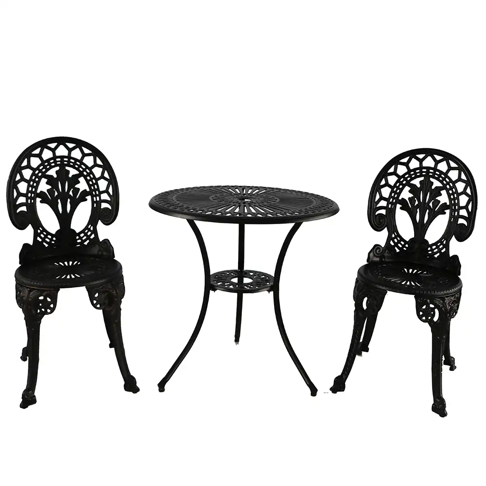 3 Piece Cast Aluminium Bistro Set Black Jvees
