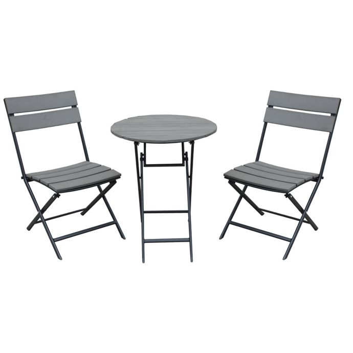 Metro 3 Piece Folding Resin Wood Outdoor Bistro Set In Grey Black
