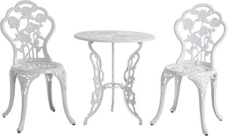 Sunnydaze 3 Piece White Flower Designed Cast Aluminum Bistro Set