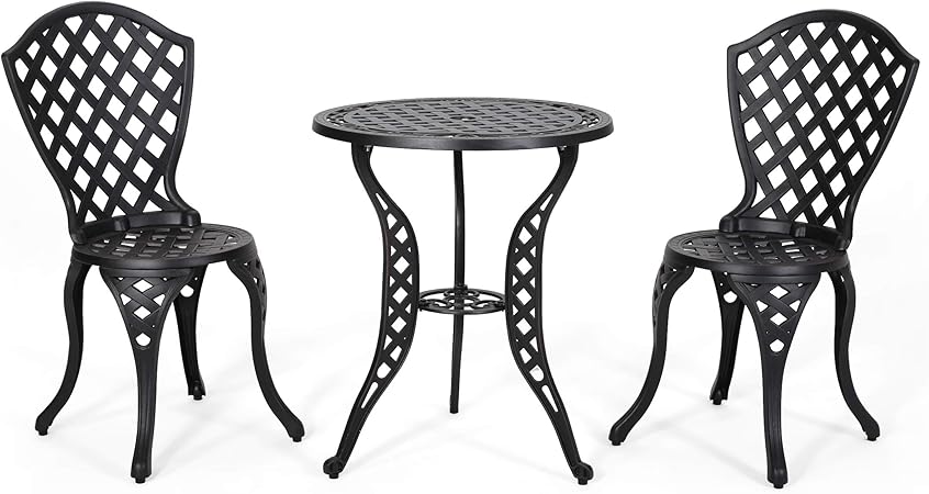 Gdf Studio 3 Piece Castro Outdoor Black Cast Bistro Set