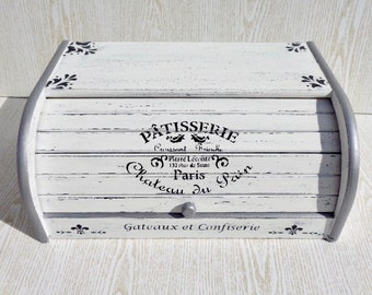 White Metal Bread Bin With Black Print Comptoir Des Saveurs