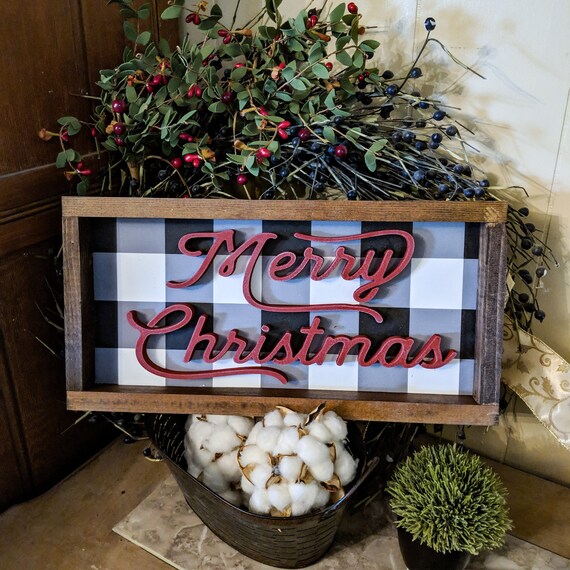 Merry Christmas On Black And White Buffalo Check Christmas Etsy