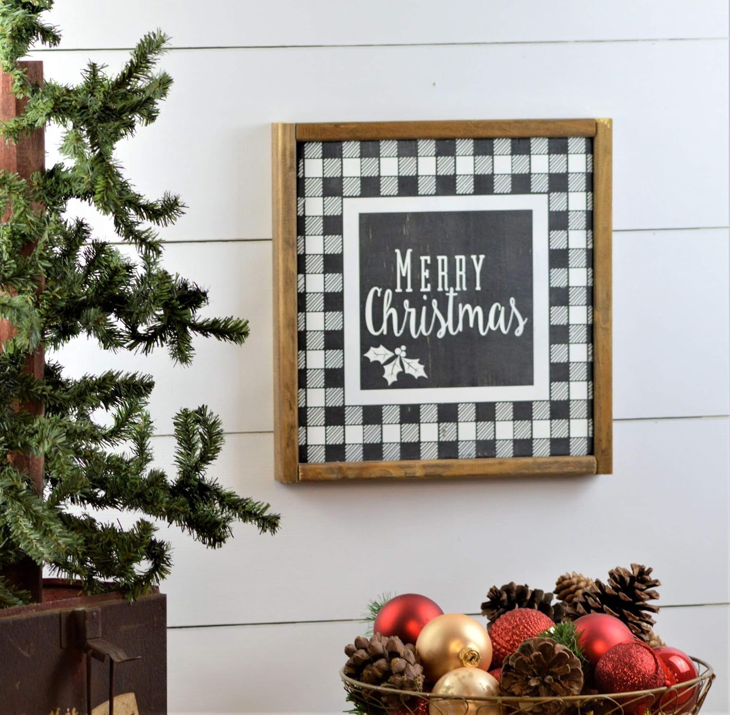 Dason Buffalo Plaid Christmas Decor Black And White Framed Wooden