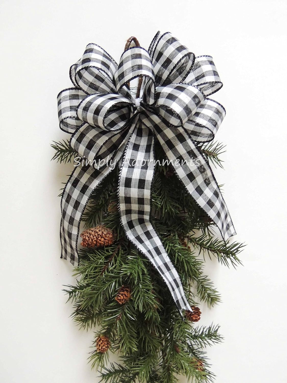Buffalo Check Bow Christmas Tree Toppers Black White Plaid With