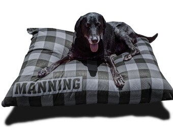 White Buffalo Check Dog Bone Custom Name Large Pet Bed