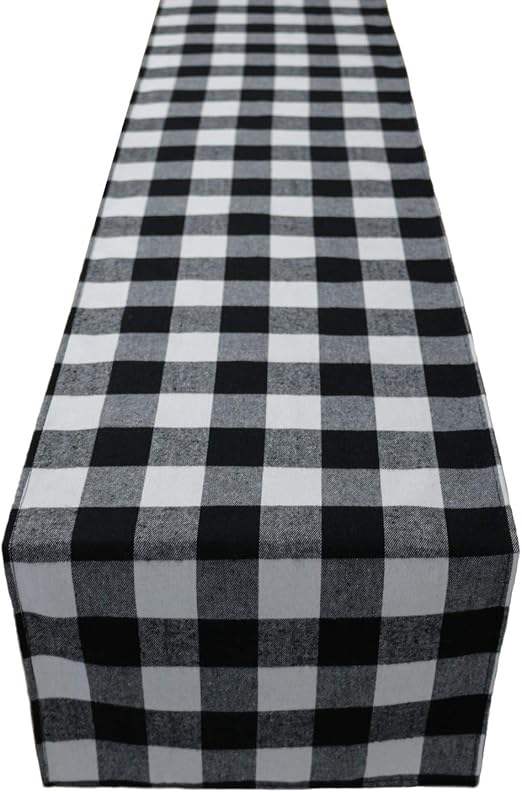 Amazon Com Cotton Buffalo Check Table Runner Black And White