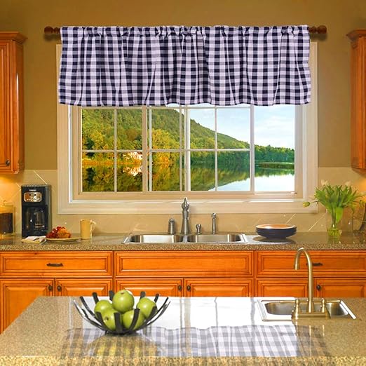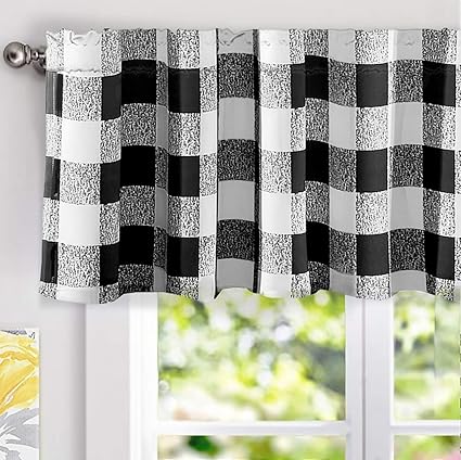 Amazon Com Th3mys Lined Buffalo Plaid Valance Curtains Black And