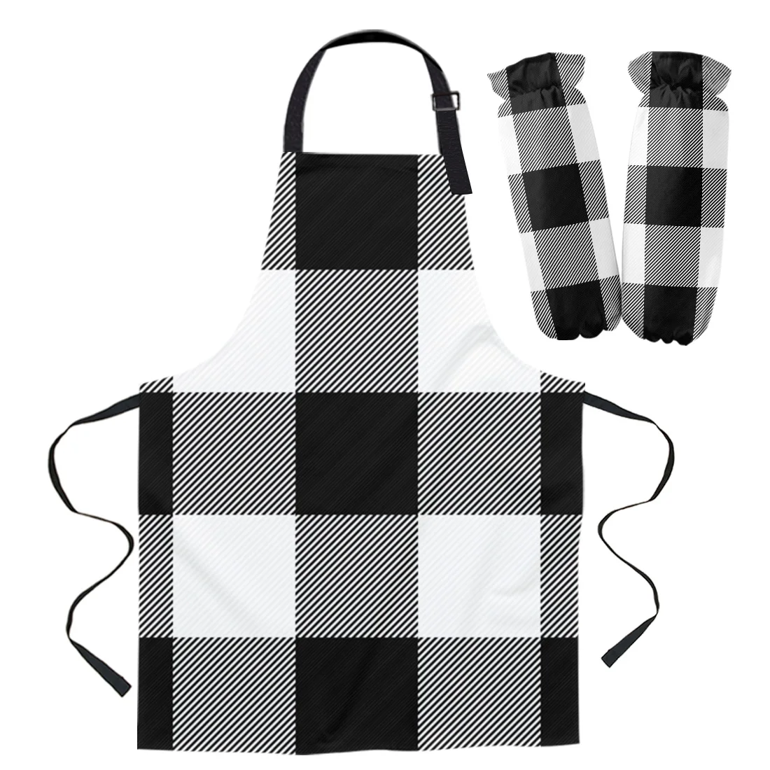 Black White Plaid Buffalo Check Kitchen Aprons Chef For Woman Kids