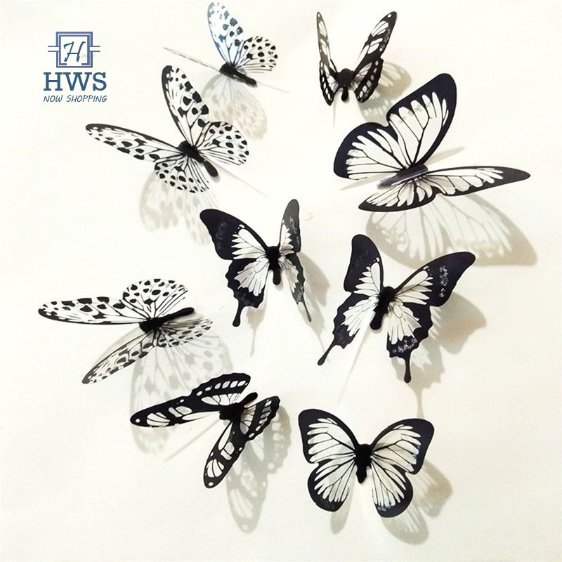 Elecmotive 36 Pcs 3d Colorful Crystal Butterfly Wall Stickers With Adhesive Art Decal Satin Paper Butterflies Home Diy Decor Removable Sticker Black White Amazon Com