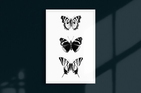 Black And White Butterfly Wall Art Butterfly Vintage Etsy