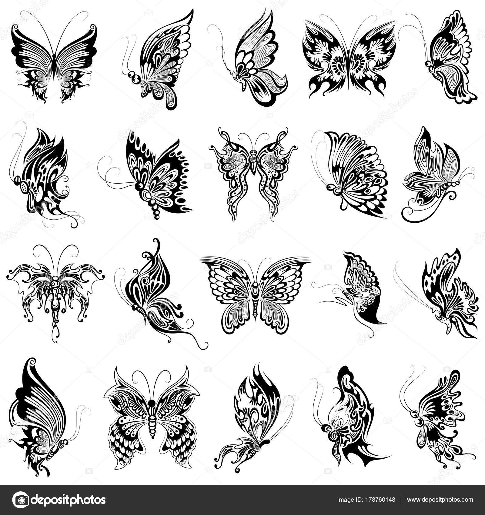 Set Black White Butterflies Of A Tattoo