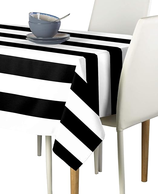 Black White Cabana Railroad Jail Ref Stripe Dine Oilcloth Vinyl