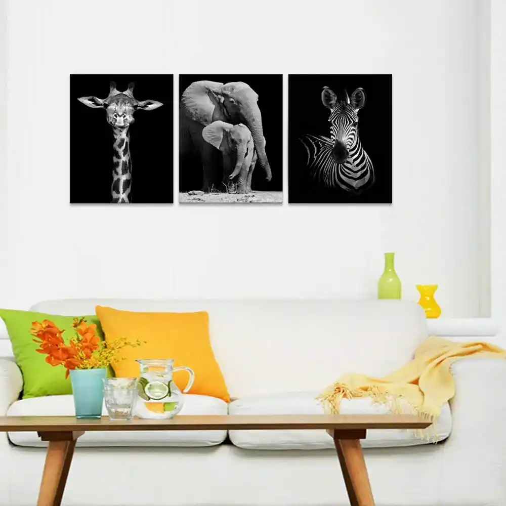 Black And White Canvas Wall Art Animals Picture Elephant Zebra