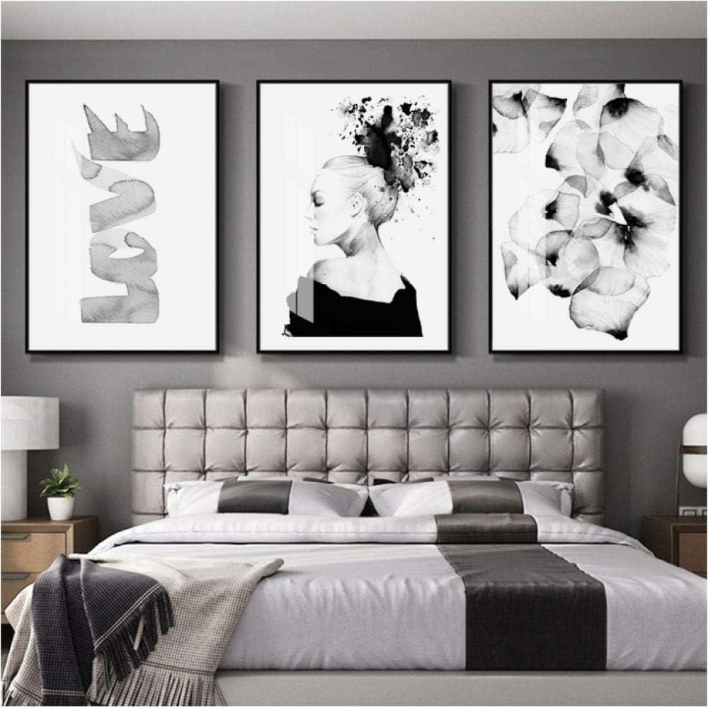 Edgift2 Sketch Fashion Girl Canvas Poster Black White Flower Wall