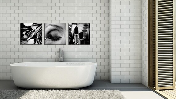 Bathroom Wall Decor Canvas Art Black And White Makeup Etsy