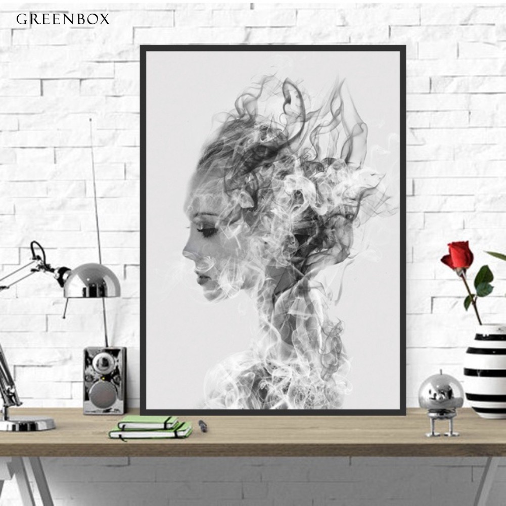 Nordic Canvas Painting Black White Figure Lady Wall Art Print