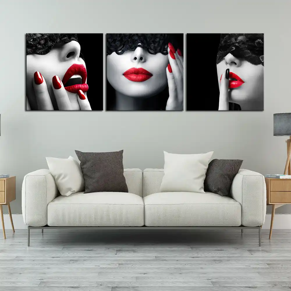 3 Piece Canvas Art Prints Red Lip Pictures Black White Red Canvas