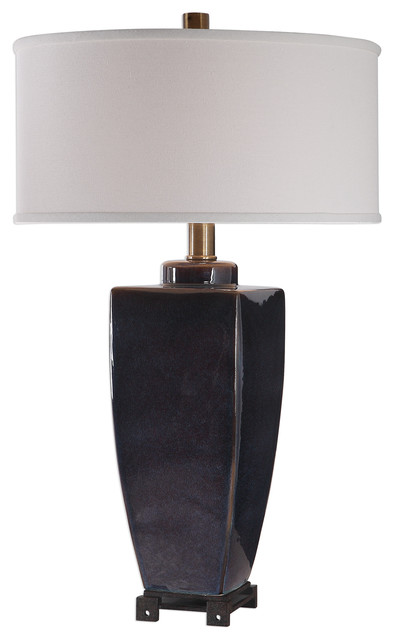 Luxe Gloss Dark Blue Bronze Ceramic Table Lamp Midnight Black White Classic Transitional Table Lamps By My Swanky Home