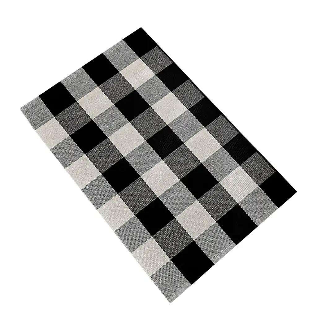 Youyue 100 Cotton Rugs Black White Checkered Plaid Rug For