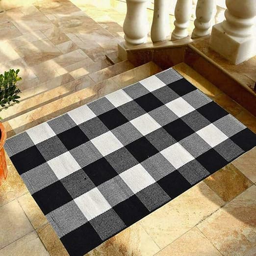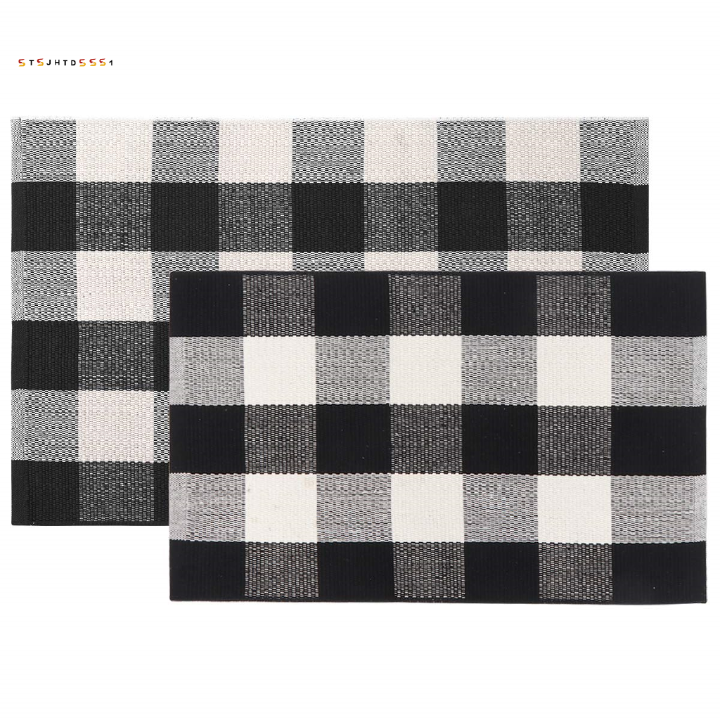 Cotton Buffalo Plaid Rugs Black White Checkered Rug Welcome Door