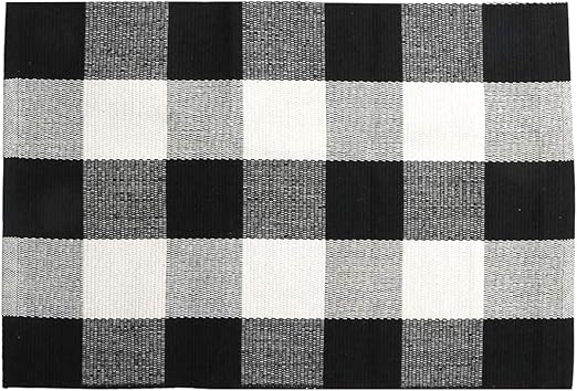 Ustide 2 X3 Cotton Buffalo Plaid Outdoor Rug Black And White
