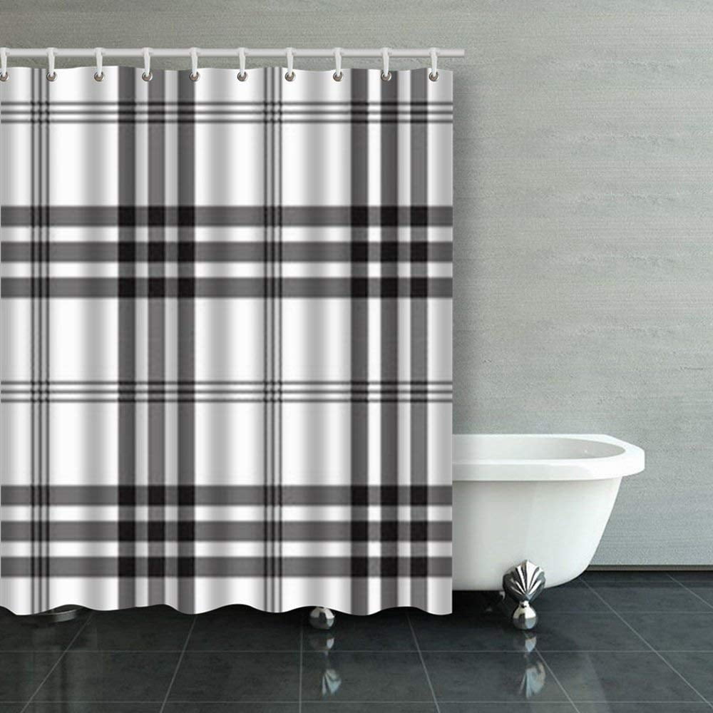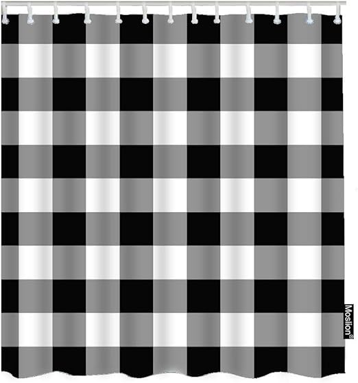 Amazon Com Moslion Plaid Shower Curtain Set Classic White Black Stripes Gingham Checkered Tartan Buffalo Check Bathroom Shower Curtain Home Decorative Waterproof