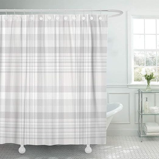 Amazon Com Emvency Shower Curtain Border White Gingham Tartan Plaid Pattern Checkered Grey Check Shower Curtains Sets With Hooks 72 X 72 Inches Waterproof Polyester
