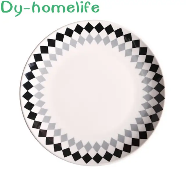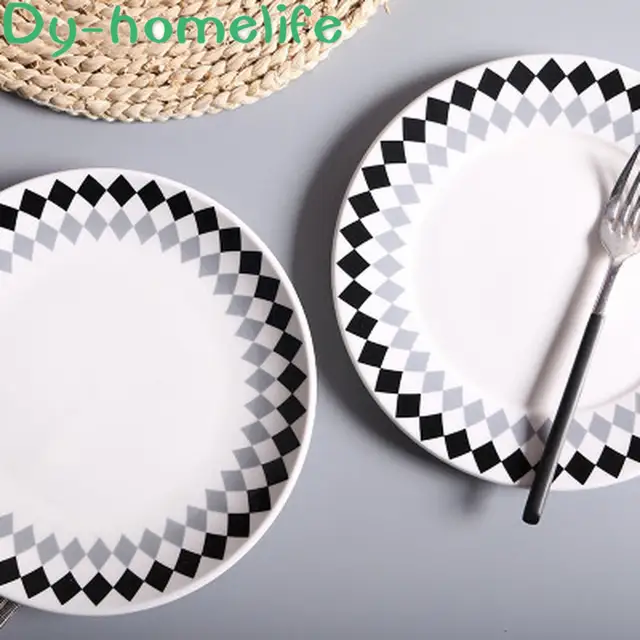 Online Shop 8 Inch Diamond Shaped Checkered White Round Ceramic Plate Family Kitchen Tableware Restaurant Bone China Western Steak Plate Aliexpress Mobile