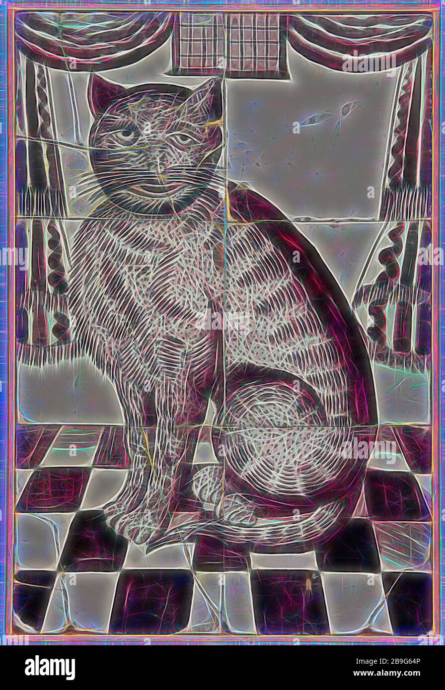 Van Der Wolk Purple Tile Tableau Sitting Cat Facing Left On Black And White Checkered Floor Looks At The Viewer Tile Picture Material Ceramic Earthenware Glaze Metal Two Wide Three High On
