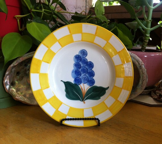 Macy S The Cellar Ceramic Plate Italy Yellow Checkered Etsy