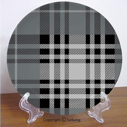 Amazon Com Sosung Checkered 8 Ceramic Decorative Plate Old Fashioned Plaid Tartan In Dark Colors Classic English Tile Symmetrical Grey Black White For Living Room Bedroom Hallway Console Side Table Decor Home Kitchen