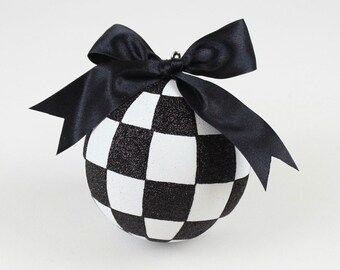 2 Checkered Ornaments Black And White Checkered Ornament Etsy