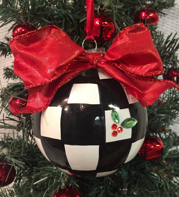 Black White Checkered Ornaments Checkered Ornaments Black Etsy